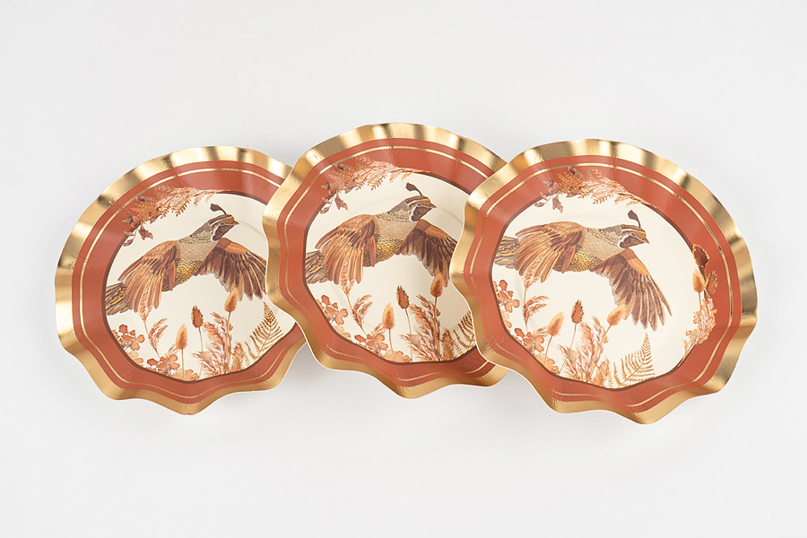Ningbo Fenghua Yongfa Printing & Stationery Co., Ltd. specializes in the production and manufacturing of paper printing products, party supplies, and packaging supplies. Our paper plates support customization of patterns and shapes. Our factory covers 9,000 square meters and has over 100 employees, more than 70% of whom have over 10 years of experience.